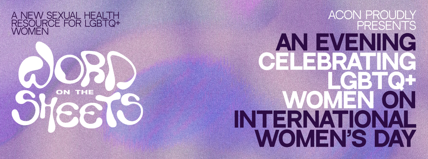Produced by ACON with support from Women NSW, Celebrating LGBTQ+ Women will feature live music, performances and creative engagements led by a diverse array of artists from our communities. The event will provide an opportunity for LGBTQ+ women and allies to gather in a dynamic social space, access health and wellbeing resources, and officially launch Word on the Sheets, ACON’s groundbreaking new sexual health website created by and for LGBTQ+ women.