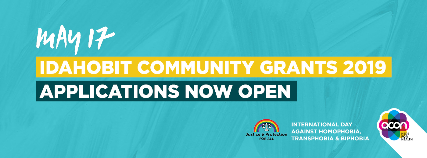 ACON is providing 8 small grants of $650 to support individuals or community groups to hold an event to increase awareness of IDAHOBIT and demonstrate the theme in your local community.